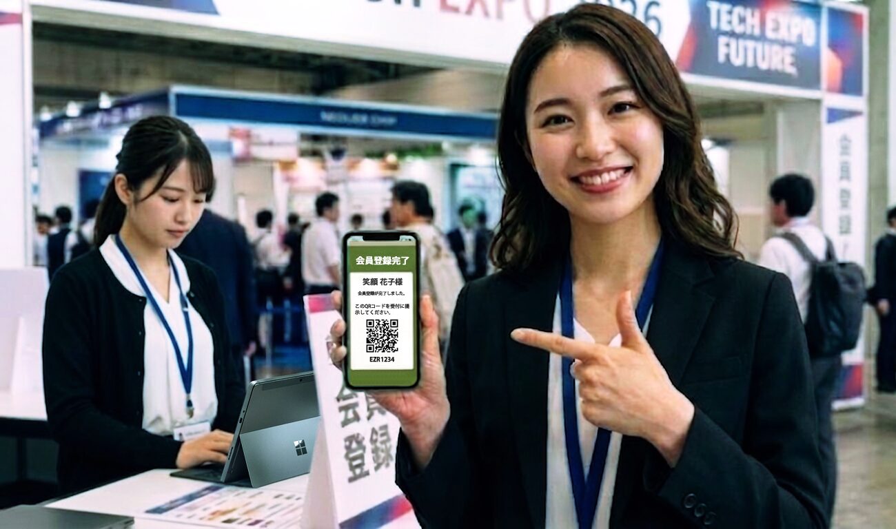 展示会や即売会、就職フェアなど受付の入場・退場はもちろん、出展者のQR読み取りも可能なプランとなります。