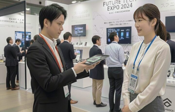 出展者もQR機能でブース来場者情報をデータで記録出展ブースでも、来場者QRコードを読み取るだけで、ブース来場者情報をデータで記録できます。会社名や連絡先の他、いつ・誰がブースに来場されたかが管理できます。出展者がスマホでQRコードを読み取ることで、ブース来場者の情報を簡単にデータとして記録できます。これにより、来場者のデータを一元管理し、後日の分析やフォローアップが容易になります。